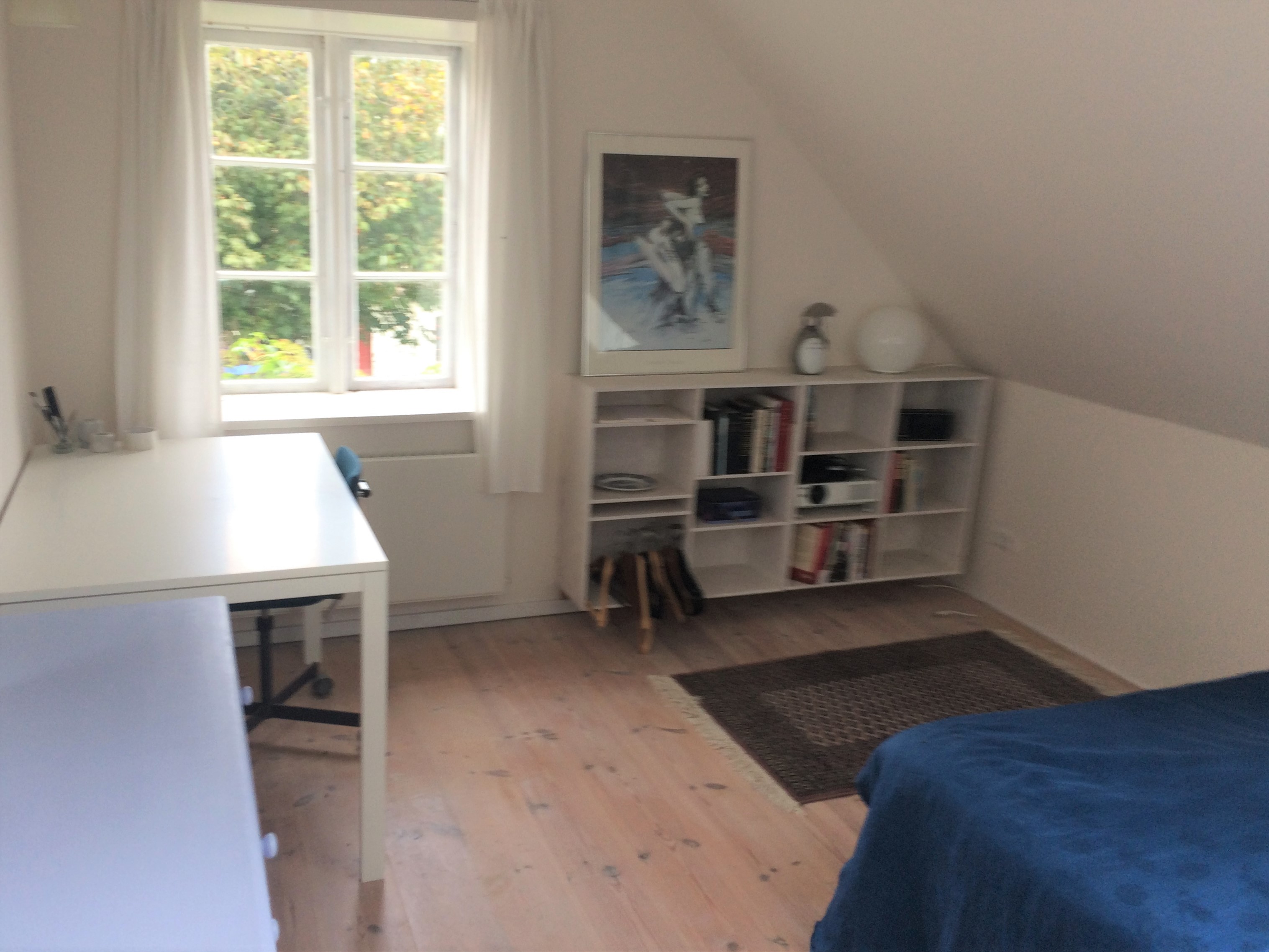 Skovværelset ligger i stueetagen, lige over for badeværelset. Kig mod vest